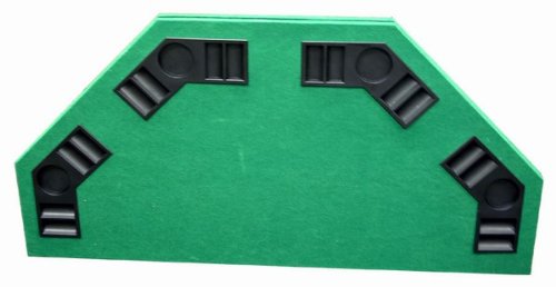 Item DescriptionWant an authentic poker table but don’t have the room for a large piece of furniture? This folding poker / blackjack table top is the perfect way to turn any square or round table into an authentic gaming surface. The playing surface measures 52″ from corner to corner. Seats up to 8 with drink and chip trays for each player. The tabletop folds for easy storage and comes with a sturdy black zippered carry bag with handles. |