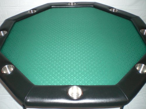 Poker Tables Item ID: #246Texas Holdem Poker Table w/ Stainless Cup Holders, Suited Speed Cloth, with Folding Table Legs 48″x48″x30″high – Forest GreenItem DescriptionThe Best of Both Worlds : The Quality and materials of a Casino Poker Table with the convenience of simple storage. This Texas Holdem Poker Table features the fastest growing surface in Casino Card Rooms… Diamond Suited Speed Cloth. The diamond suited surface is the most gorgeous surface money can buy, it also happens to be the most durable. Our table also features the finest Stainless Steel Cup Holders as used in the Casinos. They are very deep to hold your drink securely. The thick padded rails are composed of 5/8″ High Density Foam. They are then finished off with the finest grade Black Vinyl creating a comfortable and durable rail. 3/4″ Solid Wood Table. You won’t find another table like this anywhere. |